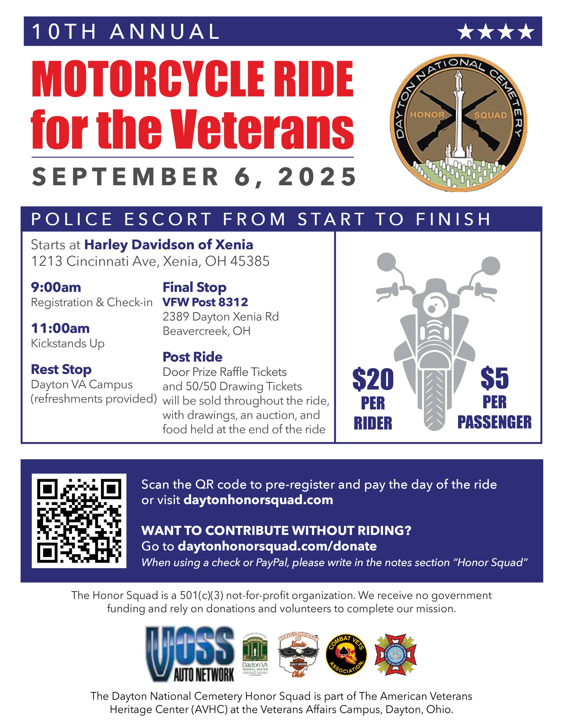 The Dayton National Cemetery Honor Squad is hosting its 10th annual ride on Saturday, September 6, 2025.
